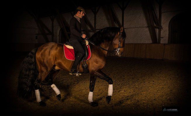 Having grown up with horses, he trained horses early. He worked in well-known Spanish stud farms, presented horses in tournaments in Spain and presented SICAB * horses by the hand or under the saddle at the big horse fair.